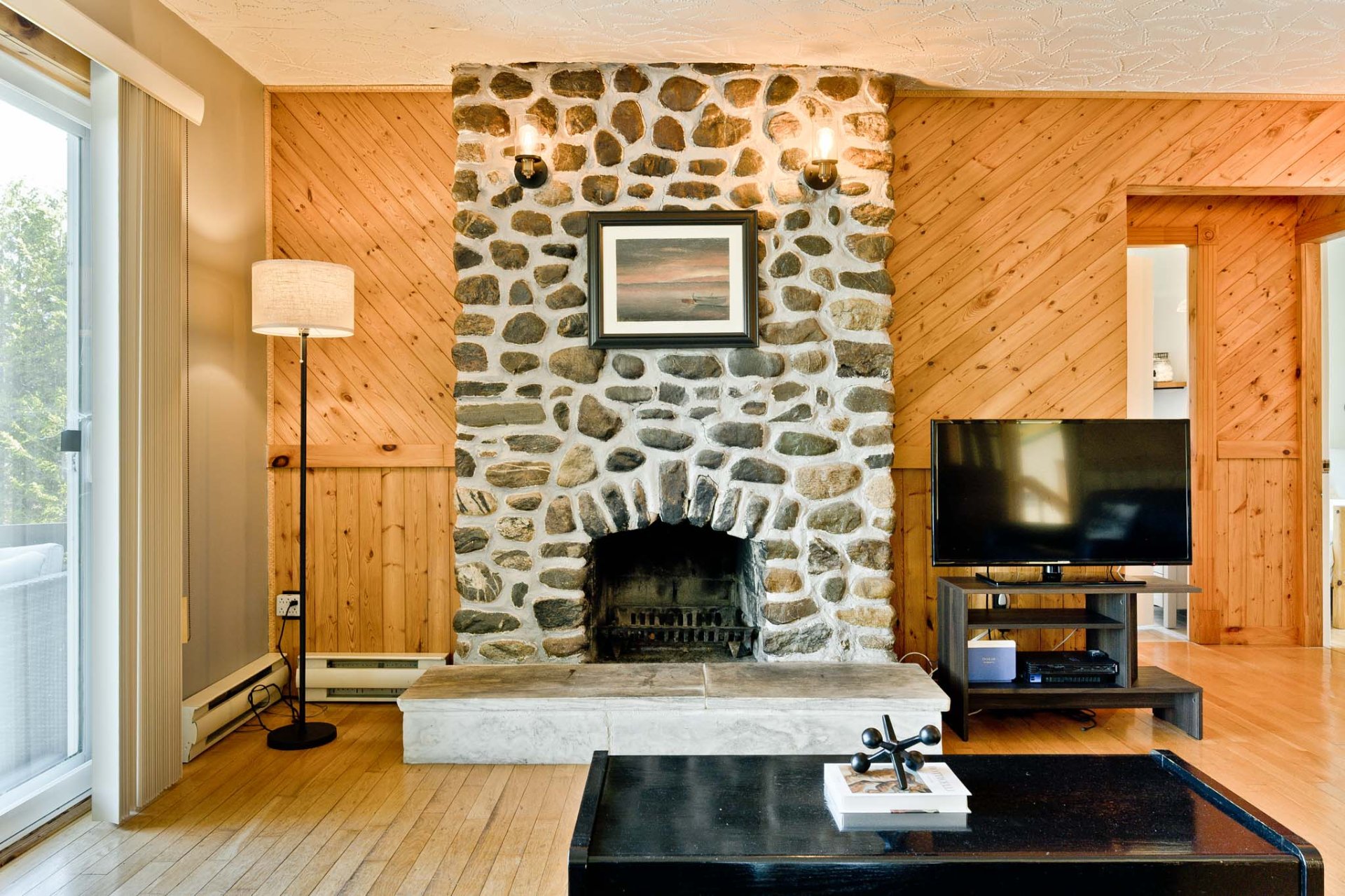 magnifique foyer de pierre, devient le coeur chaleureux de