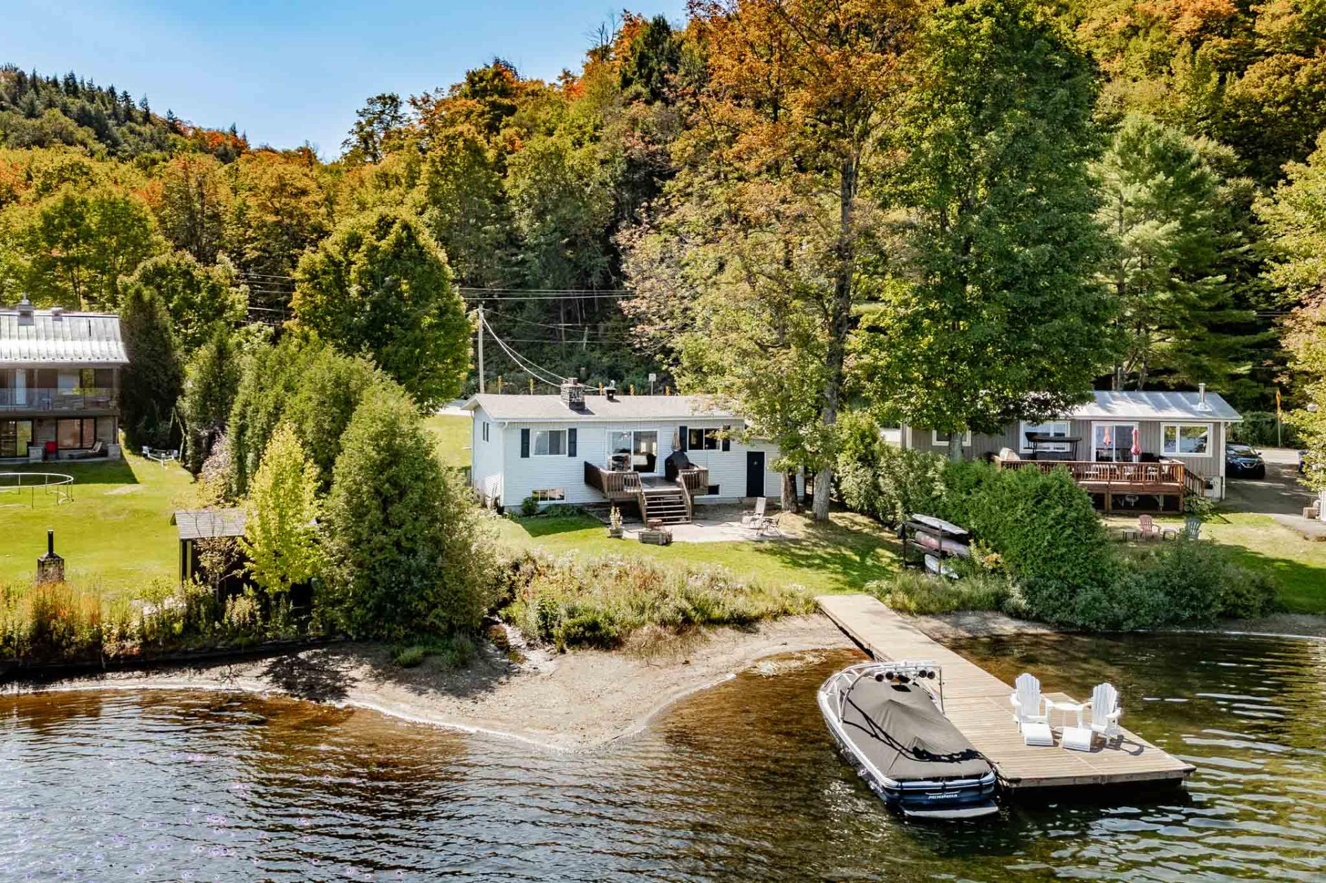 66' linéaires de littoral aux abords du prisé lac Bowker, l'un des plus beaux du Québec! Cette maison profite d'un terrain de 10 115 pieds carrés bien aménagés avec terrasse, grand patio, quai et petite plage. L'intérieur comporte un vaste hall d'entrée menant au garage simple attaché, une belle aire ouverte avec foyer de pierre à l'étage, un beau cachet, 4 chambres, 1,5 salle de bains et un sous-sol entièrement fini. Vous apprécierez tout de cet endroit et son potentiel incroyable!